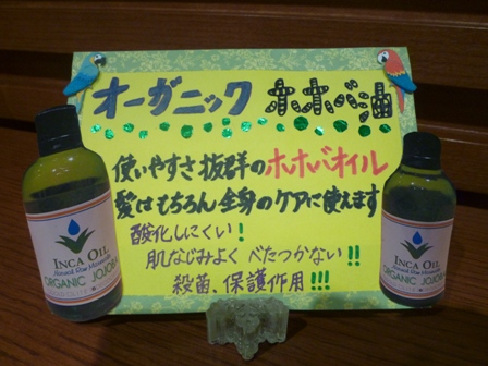 お店で使っているヘアケア商品、スタイリング剤、ハーブティーなどなどをご紹介しているPOP達。