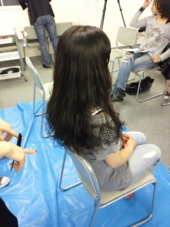 実際の仕上がりはこんなかんじでした。このモデルさんの場合は毛先にカールが欲しかったので最後の薬をつける際にロッドで巻いてしあげました。このほかにもあと2人のモデルさんを使って仕上がりを見ました。どのモデルさんもクセはしっかり伸びつつ全体の質感が滑らかで柔らかくなりました(^o^)
