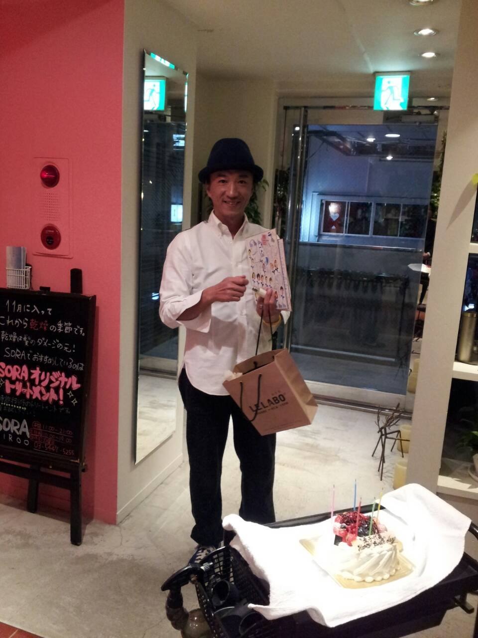 金子代表BIRTH DAY 2013/11/25 MAIN SORA 広尾店 11月26日は金子代表のお誕生日です☆ 広尾店では日曜日の営業後にお祝いをしました!! 3店舗からのメッセージ色紙と誕生日ケーキ 香水とジェルをプレゼントしました!! これからも尊敬するかっこいい代表でいて下さい。 ついていきます!!! 素敵な誕生日を過ごして下さい(^O^)